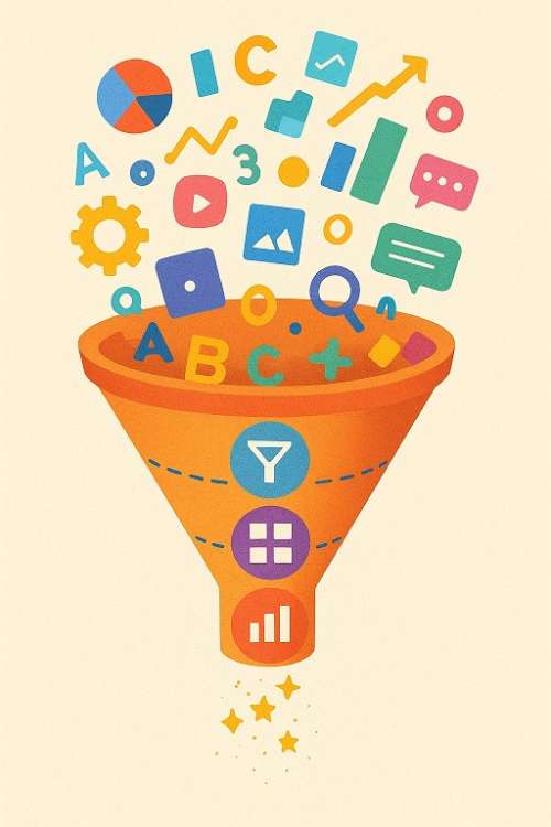 - تحلیل: شامل عملیاتهای فنی و مکانیکی مانند سازماندهی، دستهبندی و مقایسه است. هدف تحلیل، «استخراج و منظم کردن» دادههاست.